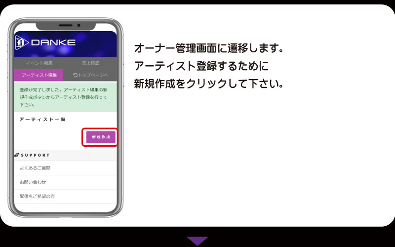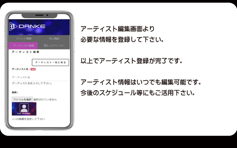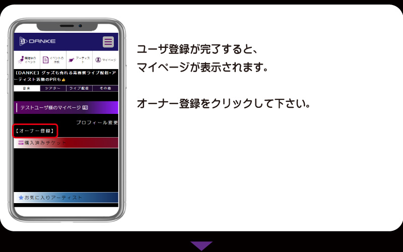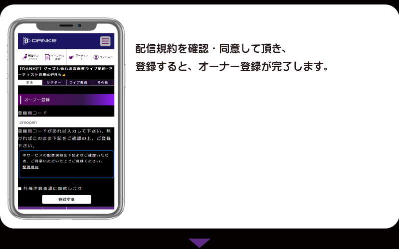 グッズも売れる高画質ライブ配信+アーティスト活動のPRなら【DANKE】 主催者登録のためのマニュアルはこちら 音楽 シアター ライブ配信 その他 オーナー登録までの流れ 各種マニュアル よくあるご質問 配信をご希望の方 お問合せ