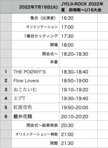 *毎年、春・夏2回行われる、JYOJI-ROCK U22 GRAND PRIXの前哨戦として、参加条件16歳以下だけの大会を開催!